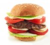 Каждую булочку разрежьте пополам вдоль. На нижнюю часть положите колечки лука, котлету, помидоры, салат и сверху полейте соусом. Накройте верхней половиной булочки и ешьте на здоровье.
