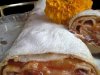 Для заливки смешать сметану с сахаром, слегка взбить и добавить яйца. Еще раз взбить все до однородной массы, залить рулеты и поставить в разогретую до 180 градусов духовку. запекать до подрумянивания, по времени примерно полчаса.