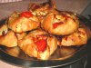 Булочки разрезать пополам, мякиш вынуть. Должны остаться корзиночки, но не делайте донышко и стенки слишком тонкими чтобы не размокли. Наполните булочки приготовленным фаршем, переложите на застеленный пекарской бумагой противень и поставьте в горячую духовку. запекайте при температуре 200 градусов примерно 15 – 20 минут.