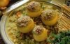 Репу чистим, верхушечку надрезываем крестообразно. Выкладываем репки на противень, наливаем немного кипяточка и тушим в духовке. Из размягченной репки ложечкой аккуратно достаем мякоть так, чтобы получились «стаканчики».