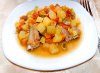 Помидоры обдаем кипятком, снимаем кожицу, мякоть режем кусочками. Выкладываем к мясу с овощами и продолжаем тушить под крышкой. В конце приготовления добавляем лук-порей или репчатый лук и тушим пока лук не станет мягким. Выключаем огонь, даем настояться готовому рагу минут 10 – 15 и посыпаем мелко нарезанной зеленью.
