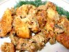Пока варится картофель, репчатый лук и чеснок мелко режем, зеленый лук режем наискосок полосками. В сковородке разогреваем растительное масло, на сильном огне обжариваем оба вида лука, потом добавляем нарезанные грибы и чеснок. Обжариваем до готовности грибов. В конце солим-перчим, добавляем петрушку. Выкладываем смесь на дно формы для запекания. Сверху накрываем картофелем.