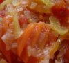 Соединить перец и морковь, перемешать. Отдельно приготовить маринад, для этого надо соединить сахар либо мед, масло растительное и соль. Эту смесь полить на салат, аккуратно перемешать и присыпать нарезанным луком. Блюдо можно подать к вашему столу.