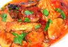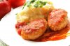 Добавляем нарезанный кабачок и болгарский перец (перец нарезать брусочками), пропущенный через пресс чеснок. Через несколько минут вливаем разведенную в стакане воды томатную пасту, добавляем соль, специи, зелень и тушим на среднем огне под крышкой минут 20. В конце приготовления пробуем соус на соль, если нужно – корректируем вкус. По желанию можно добавить немного сметаны – вкус у соуса будет нежнее. Приятного аппетита!