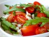 Маслины нужно нарезать колечками (не очень мелко). Смешать маслины и помидоры, полить заправкой, посолить и поперчить по вкусу. дать салату несколько минут настояться и подавать к столу. Приятного аппетита!