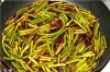 Пока стрелки варятся, на сухой сковородке слегка обжарить семена кунжута, переложить в салатник. В эту же сковородку налить растительное масло, влить соевый соус, уксус, хорошо прокалить эту смесь.