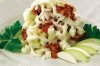 Добавляем мелко нарезанные яйца, нарезанный кубиками соленый или свежий огурец, репчатый лук (его можно ошпарить кипятком и немного подержать в горячей воде).