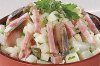 Картофель отвариваем в мундире, остужаем, очищаем и нарезаем кубиками.