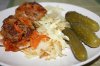 Из томатной пасты, сметаны (или майонеза) и воды делаем соус, солим-перчим по вкусу. Если нужно – добавляем щепотку сахара.