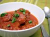 Обжаренные тефтели перекладываем в сковородку или в форму для запекания с высокими бортиками, заливаем соусом, посыпаем зеленью и тушим минут десять на небольшом огне или в духовке. К таким тефтелям подойдет любой гарнир.