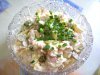 Смешать майонез с горчицей или добавить горчицу в растительное масло и слегка взбить вилочкой. Разложить салат в порционные креманки или салатники, полить заправкой и сразу же подавать к столу.