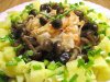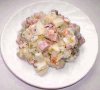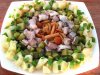 Если хотите чтобы салат получился более основательным, сытным, любите традиционное сочетание картофеля и селедочки – добавляйте в салат вареный картофель. Его лучше отварить в мундире, остудить, почистить и мелко нарезать. В салат добавлять только когда полностью остынет – теплый картофель ухудшает вкус салатов.
