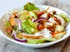 Для заправки смешать оливковое масло с лимонным соком и слегка взбить вилочкой. Добавить мед, соль и перец по вкусу и полить салат. Сразу же подавать. Приятного аппетита!