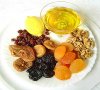 Если курага сухая, ее нужно залить кипятком на пять минут, потом воду слить. Изюм желательно распарить на водяной бане и обсушить. Чернослив и финики вымыть, обдать кипятком, удалить косточки. Все сухофрукты смешать и измельчить блендером до состояния однородной пасты.