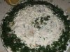 Сверху салат смазываем майонезом и украшаем половинками орехов грецких и зеленью.