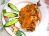 Рыбу нарезать небольшими кусочками, сбрызнуть лимонным соком, чуть посолить и поперчить. Выложить в сковородку поверх овощей и готовить десять минут.