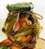 Мелко режем лук, чесночок и морковку и добавляем в бульон для холодца за час до готовности вместе с лавровыми листиками, горошинами перца и укропом . Процеживаем бульон в другую посуду, мясо обираем с костей и мелко режем. Заливаем мясо бульоном и прогреваем на слабеньком огне 10 мин.