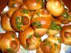 Затем разделите на 12 кусочков, сделайте шарики, выложите на смазанный маслом противень и дайте подойти. Минут через 20-25 поставьте булочки в разогретую до 200 градусов духовку и выпекайте примерно 15 минут.