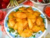 Затем снять сковородку с огня. Каждую картофелину слегка придавить стаканом так, чтобы картофелина треснула. Поставить на огонь и варить без крышки пока жидкость не испарится. Картофель должен слегка поджариться. Тогда его перевернуть и подрумянить с другой стороны. Подавать горячим, посыпав луком.