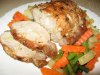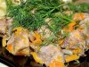 Далее в сковороде с тефлоновым покрытием нужно растопить сливочное масло и на большом огне обжарить подготовленный кусок корейки, причем быстро и со всех сторон. После этого мясо переложить в довольно глубокую форму подходящего размера и полить маслом со сковородки, а затем форму отправить в разогретую до 220 градусов духовку на полчаса, мясо при этом нужно часто поливать маслом из формы. Потом температуру уменьшить в два раза и готовить еще примерно три часа, все так же периодически поливая мясо маслом.