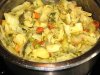 В кастрюлю всыпьте зеленый горошек и тушите овощи еще пять минут.