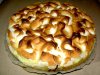 Теперь нанести 1/2 часть взбитых белков и посыпать миндальными листиками. Сразу постановить в нагретую до 170С духовку, выпекать 30-40 мин. Через 20 мин прикрыть фольгой, чтобы бизе на сгорело.