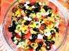 Лук-порей нарежьте кольцами (репчатый лук мелко порубите) и обжарьте в масле. Оливки нарежьте кружочками, зелень мелко порубите.