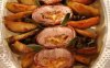 Затем мясо вынуть из маринада и пожарить на хорошо разогретой сковороде по 10 минут с каждой стороны, после чего вынуть, нарезать ломтиками и выложить на блюдо. В той же сковороде тем временем на малом огне обжарить на растительном масле порезанные ломтиками овощи, жарить в течение 10 минут, постоянно перемешивая, а затем готовые овощи выложить к мясу.