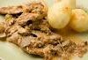 Процесс приготовления: Луковицу и морковь рассечь на 4 части, опустить в кипящую воду вместе с мясом, гвоздикой и лавровым листом. Посолить. Варить 40 минут при слабом кипении под крышкой. Вытащить из бульона, обсушить.
