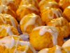 Для начинки растопить черный шоколад и смешать с двумя ложками сливок и фундуком, а затем также остудить. Из воды и сахара с добавлением небольшой щепотки лимонной кислоты сварить золотистый сироп.