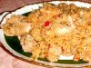 Нарежьте филе тонкими длинными полосками (почти как на бефстроганов), лук нарежьте полукольцами.