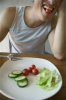 Тарелки для обедов и ужинов выбирать меньшего размера и выкладывать на них сразу же всю свою порцию, так как при постепенном добавлении можно съесть больше, чем необходимо.