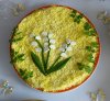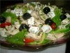 Помидоры нарезать крупными дольками, грибы – тонкими ломтиками, листья салата порвать руками. Смешать.