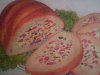 Каждый ломтик батона или булочки обмакнуть в кетчуп и выложить на противень.