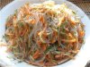 Фунчозу приготовить по инструкции и промыть под холодной водой, после чего нужно смешать все ингредиенты в салатнике, добавить перец и соль по вкусу, а также заправить небольшим количеством масла (последнее не обязательно - салат и так не должен получиться сухим).