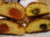 Успевшее остыть тесто разделить пополам и тонко раскатать в форме прямоугольника. сверху на каждый пласт теста ровным слоем выложить апельсиновую начинку и свернуть все это в рулет, который потом разрезать на отдельные печенья. Печенья выложить на предварительно застеленный бумагой для выпечки противень и выпекать в течение 15 минут в предварительно нагретой духовой печи.