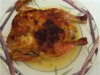 Для приготовления такой оригинальной и очень красивой на вид закуски вам потребуется следующий список продуктов: целая тушка курицы весом примерно на один килограмм, 100 граммов голландского сыра (ну или же сыра другого сорта), половинка пачки качественного сливочного масла, 100 миллилитров куриного бульона, молотый мускатный орех, немножко мадеры (по желанию), соль, а кроме этого свежая зелень, сливочное масло, оливки и долька апельсина для украшения готового блюда.