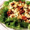 Далее вареную куриную грудку, жареные шампиньоны, а также горсть грецких орехов и чеснок измельчить при помощи мясорубки и смешать с соевым соусом и тертым сыром, добавить к массе соль и перец по вкусу.