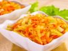 Для того, чтобы сделать такой салатик вам понадобится совсем немного вполне доступных ингредиентов, таких как: 200 граммов квашеной капусты, одна черная редька весом примерно в 100 граммов, одна-две некрупных морковки, один небольшой пучок зеленого лука, одна столовая ложка растительного масла (оливкового или подсолнечного), а также половина столовой ложки уксуса (также вместо уксуса при желании можно добавить в салат сок половины лимона).