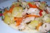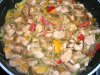 Овощи нужно почистить, капусту нарезать небольшими кусочками. Картофель разрезать пополам или на четыре части. Луковицу разрезать пополам. Куриное филе нарезать кусочками. Грибы выложить на сковородку с маслом и чуть обжарить (пропарить).
