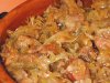 Для того, чтобы приготовить этот самый мульгикапсад вам будут необходимы следующие продукты: 800 граммов квашеной белокочанной капусты, около 400 граммов мякоти свинины, примерно три четверти стакана перловой крупы, 100 граммов бекона, две средних репчатых луковички, лавровый листок, одна чайная ложка сахара, тмин, молотый черный перец и соль по вкусу, вода.