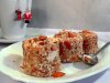 Ягоды клюквы или вишни нарежьте мелкими кусочками (если клюква мелкая, то ее можно оставить целиком). Положите все в миску. Добавьте две столовых ложки сгущенного молока и перемешайте. Наберите массу в чайную ложку, выложите на ладонь и попробуйте слепить шарик. Он должен держать форму. Если разваливается, то добавьте еще немножко сгущенки. Добавляйте по чуть-чуть, иначе масса станет жидкой, и придется положить еще орехов.