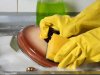 Средства бытовой химии тоже неплохо удаляют известковый налет. Возьмите «Доместос» или «Комет», нанесите средство на жесткую губку с абразивной поверхностью и протрите загрязненные участки. Оставьте на два часа, затем почистите ершиком и спустите воду.