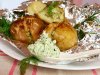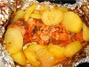 Как уже говорилось ранее, в фольге можно запекать абсолютно все продукты: овощи, мясо птицы, свинину и говядину, рыбу и даже фрукты. Мясо вы можете заворачивать в фольгу цельным, большим куском, а можете запекать небольшими кусочками, посыпав их любимой приправой. Стоит отметить, что солить мясное блюдо лучше всего тогда, когда оно будет готово, то есть на столе, в противном случае, оно выделит во время запекания слишком много сока. Рыбу, как раз наоборот, перед тем как завернуть в фольгу, просолите в два раза сильнее, чем вы сделали бы это при обыкновенной жарке. Далее предлагаем вам ознакомиться с несколькими рецептами запекания не только картошки, но и рыбы, и мяса.