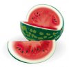 Когда вы все разметили и убедились в правильности расчетов, то начинайте аккуратно убирать все лишние корки. Мякоть арбуза тоже придется удалить, но можно это сделать специальной шариковой выемкой, тогда впоследствии вы сможете заполнить арбузную корзину оригинальными фигурками, одной из которых будут шарики.