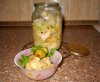 Затем банку ставим в кастрюлю, наполненную горячей водой (так, чтобы вода из кастрюли не попадала через горлышко в банку). Даём воде в кастрюле прокипеть в течении пяти минут. Вынимаем банку с чесноком из кастрюли. Чеснок можно будет есть уже через пару суток.