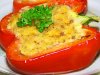 Для приготовления этого блюда нам потребуется: болгарский перец (штук 7 - 8), готовый мясной фарш 500 грамм (лучше, если фарш будет комбинированным из двух - трёх разновидностей мяса), репчатый лук 2 штуки, пол стакана риса, пол стакана томатного сока, 200 грамм сыра твёрдого.