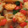 2. Мелко порежьте лук-порей и смешайте с размороженными креветками, добавьте к рыбе.