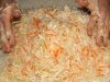 Кочанчики капустки тщательно очистить от всяких повреждений, листочков. Разрезать на несколько частей и нашинковать. Соль берется из расчета на одно ведро капусты горсть (жменя) соли пищевой. Нашинкованную капусту хорошенько смешивают с солью, немного сжимая её.