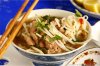 Способ приготовления. Нарежьте мясо и огурец тонкой соломкой (огурец разрежьте вдоль тонкими пластинками, затем наискосок), помидор нарежьте соломкой (предварительно очистив от кожицы и семян), редьку - соломкой, перчик, кинзу и чеснок мелко порубите, яйцо - пополам. Огурец посолите, перемешайте, дайте стечь соку (10 минут), отожмите, смешайте с сахаром, уксусом, посолите. Лапшу отварите за 2-3 минуты, промойте холодной водой, сбрызните маслом. Сырое яйцо посолите, взбейте вилкой, на среднем огне пожарьте тонкий блинчик, дайте остыть, скатайте трубочкой, нарежьте тонкой лапшой. Мясо с баклажаном обжарьте в масле, добавьте соевый соус (1 ст. л.), влейте немного бульона, выпарьте. Бульон доведите до кипения, влейте соевый соус, добавьте острый перчик, поперчите. В глубокие миски выложите лапшу, добавьте овощи, мясо, залейте бульоном, выложите половинки яиц. Посыпьте кунжутными семечками, подавайте.
